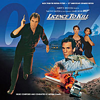 Mr. Barry was definitely back! ... in our good graces after we heard the score to "A View To A Kill" (1985) with a theme performed by Duran Duran. John Barry's final Bond score was "The Living Daylights"(1987) which introduced Timothy Dalton to the role. It made it easier to accept a new actor in the role with Barry's music behind him. They got another pop group, A-ha, to perform the theme. Completists will want to find their 45 of the theme minus the vocals on the B side. Two more songs, "Where Has Everybody Gone" and "If There Was A Man" are performed by the Pretenders. "Where Has Everybody Gone" has some of that good old Bond sound we'd been missing, but was only heard on the bad guys walkman! The re-mastered EMI CD has tracks not included on the LP. Michael Kamen was brought in to score "Licence To Kill" (1989). If nothing else, he should be remembered for bringing an electric guitar back to the Vic Flick Bond riff instead of those strings we'd been listening to. This would be Mr. Dalton's farewell performance and our farewell to 007 for six years while the producers were tied up in court. They slipped a couple of songs in again. None of them very Bond-like. "If You Asked Me To", performed by Patti Labelle was nice and better than the Celine Dion version that got air-play. The other ones were a waste of CD space...